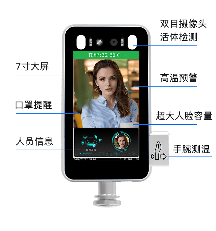 强绑定:识别身份同时测温,人员身份与体温信息强绑定