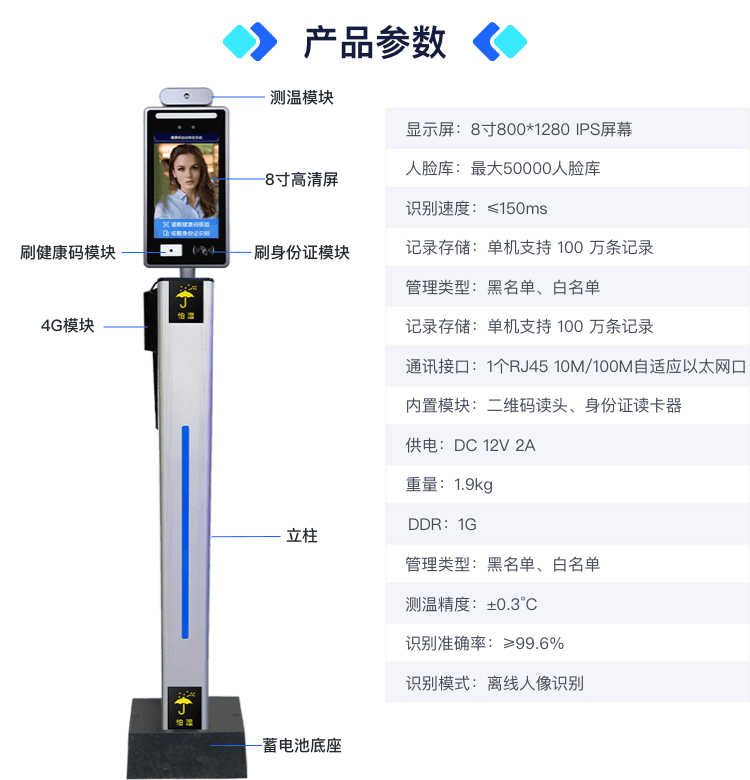 ·独有的人脸识别算法,精准识别人脸,人脸识别时间小于150ms