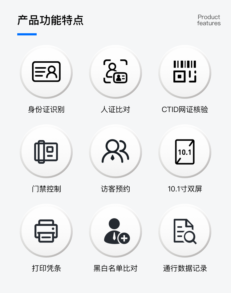 采用在线式身份证读取模块,支持刷身份证核验人员信息