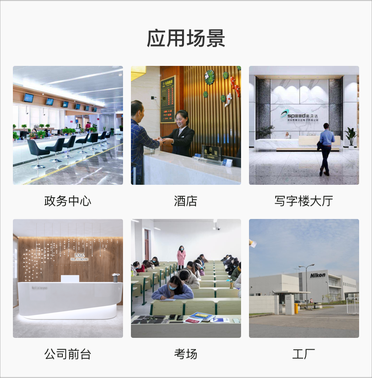 广泛应用于写字楼、社区、工厂园区、营业网点、考场、校园等多个领域